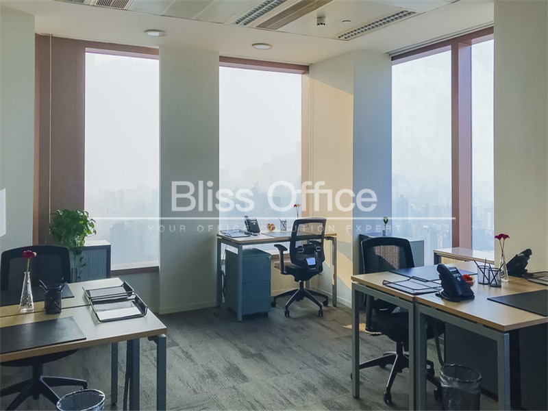港汇广场独立5人精装办公室,桌椅网络全配,高区视野出色